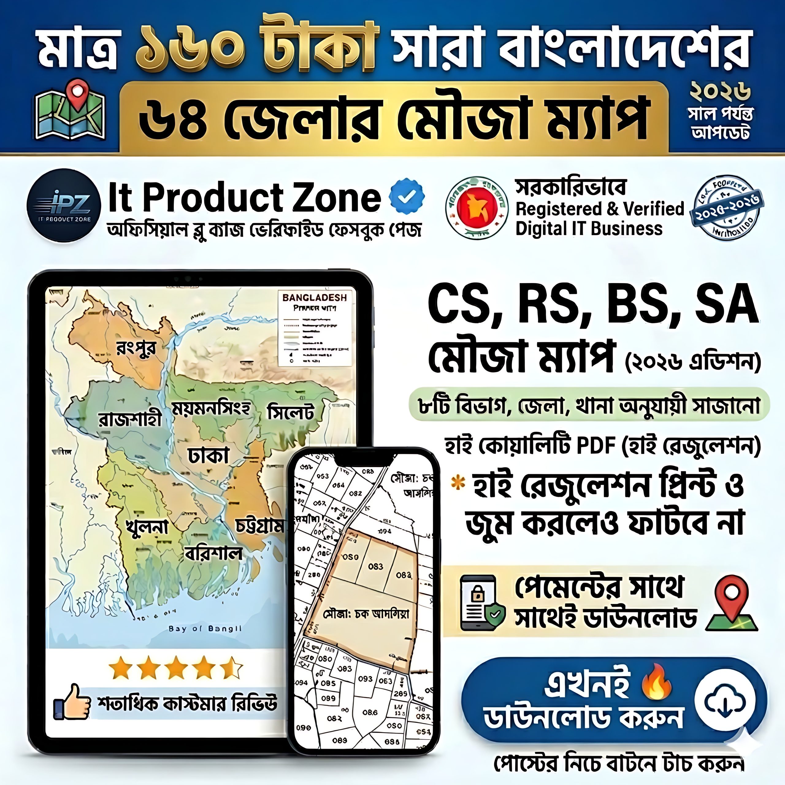 “মাত্র ১৬০ টাকায় অরিজিনাল সারা বাংলাদেশের মৌজা ম্যাপ – জমির সীমানা নিশ্চিত করুন, আইনি নিরাপত্তা লাভ করুন!”